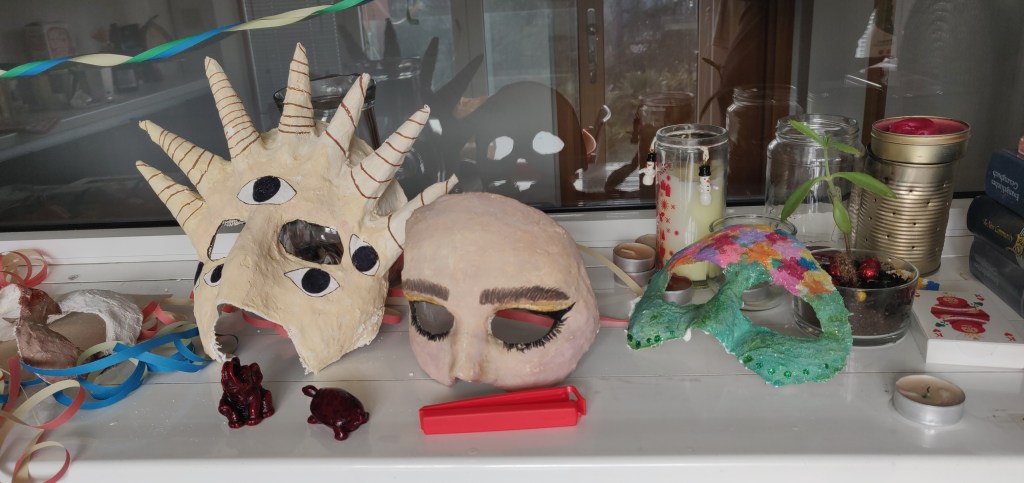 Ich mache mir einen Kaffe. Natürlich in der Bigaletti. Das Gluckern in der Kanne, der Geruch, alles passt so perfekt in diesen Vormittag. Ich schaue mich um und nun fallen mir noch mehr DInge auf. DIe ausgeschnittenen Figuren an der Wand, die selbstgezogene Avocado am Fenster, die luftschlangen verzierte Pflanze auf dem Tisch. Es sind simple, kleine Dinge, aber sie erzählen davon, das hier Menschen zusammen leben.
