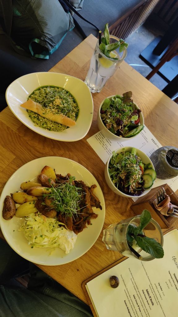 Das die Dame uns in der Touristeninformation uns ausschließlich vegane Optionen und die feministische Stadtführung vorgeschlagen hat spricht für Ihre gute Menschenkenntnis 😉 Vom Velo waren wir in jedem Fall begeistert. ausgefallene Gerichte, gemütliche Atmosphäre, netter Service und einfach wirklich unglaublich lecker. Wir waren tatsächlich an beiden Abenden da und haben uns von der selbstgemachten Limonade über Tagessuppe, Hauptgerichte bis zum Nachtisch begeistert durchgefuttert.